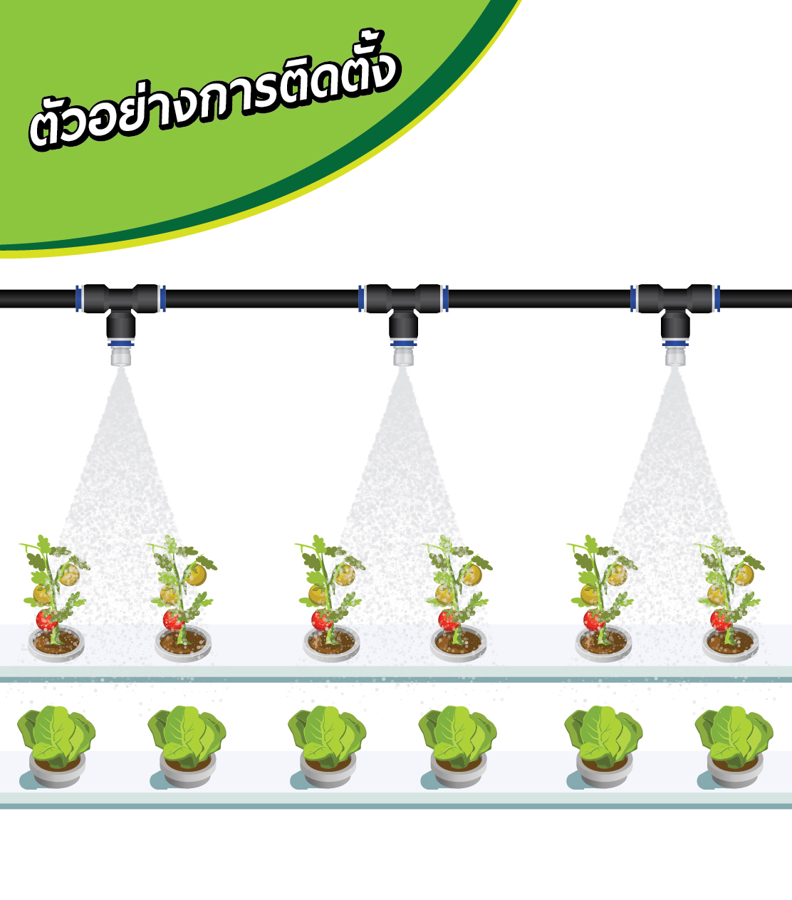 ฟาร์มกล้วยไม้ ใช้รดน้ำต้นไม้ หรือสวนหย่อม2. ฟิตติ้งฟิตล็อต 3 ทาง 6 mm