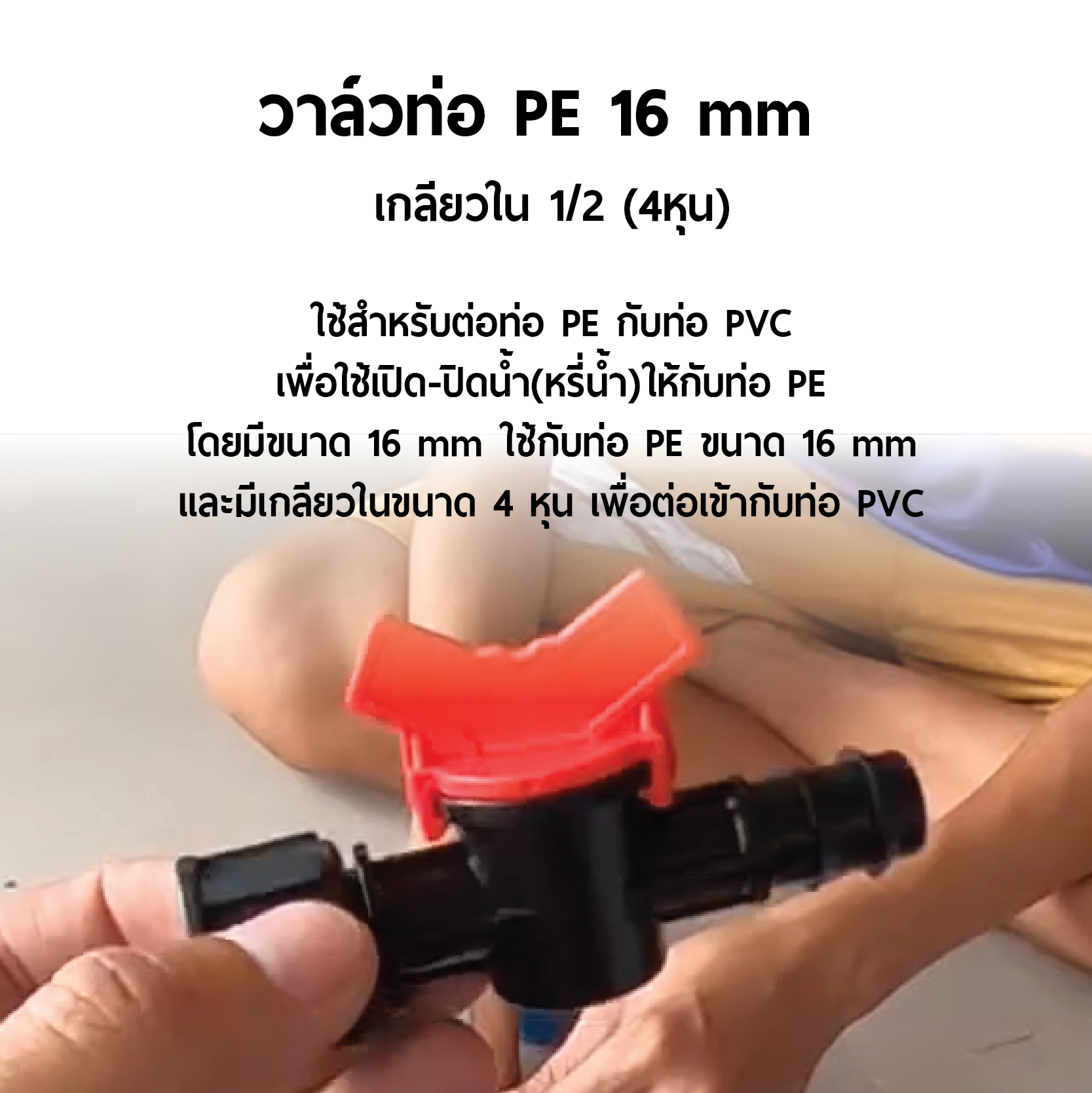 วาล์วท่อ PE 16 mm เกลียวใน 1/2 (4หุน) แพ็ค 20 ตัว ![]()