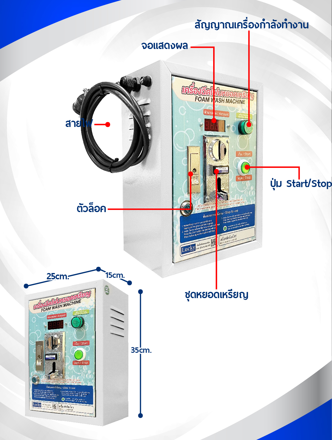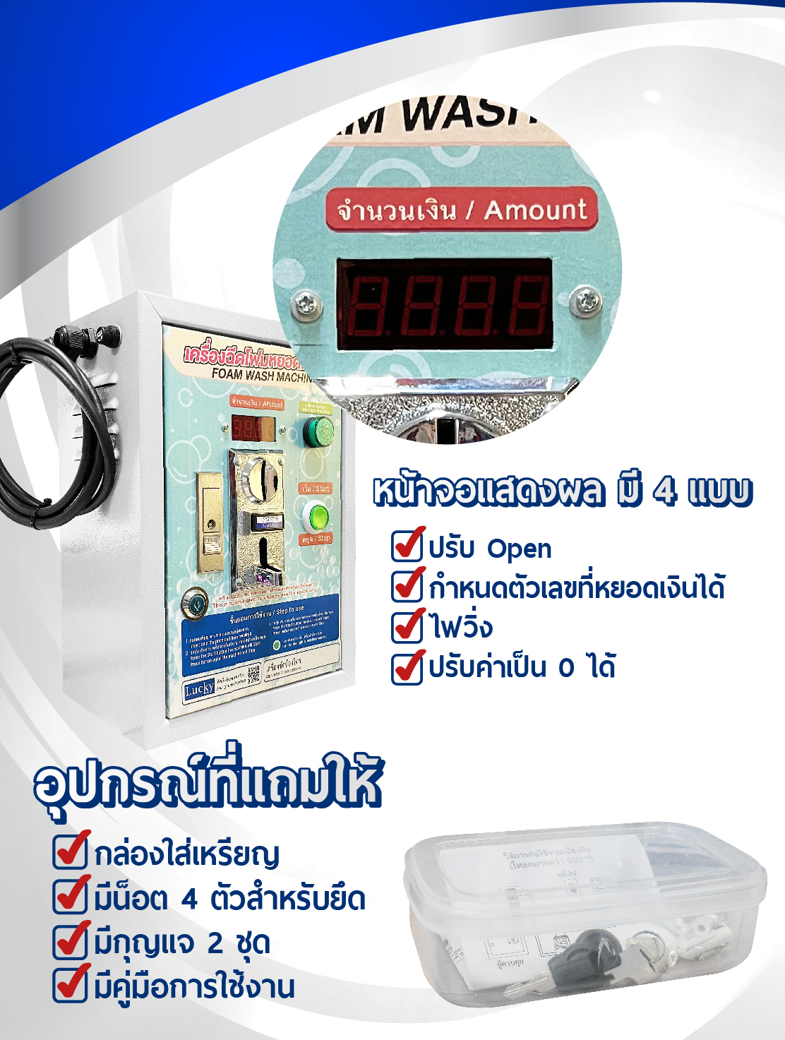 ตู้หยอดเหรียญอัตโนมัติ หยอดเหรียญ Timer จ่ายไฟ สามารถรับได้ทุกเหรียญสามารถรับได้ทุกเหรียญทุกรุ่นทั้งใหม่/เก่า มีความแม่นยำและระบบป้องกันเหรียญปลอม และมีขนาดใช้ได้ในระบบไฟฟ้าในบ้าน เรือนได้ โดยที่ใช้ไฟไม่เกิน 220 โวลต์ ได้ สายไฟยาว 2 เมตร สามารถตั้งค่าได้ตามที่ผู้ประกอบการต้องการ หน้าเครื่องจะบอกสัญาณเครื่องกำลังทำงานขึ้นไฟโชว์ทุกครั้งที่มีการใช้งานหน้าเครื่องจะบอกสัญญาณเครื่องกำลังทำงานขึ้นไฟโชว์ทุกครั้งที่มีการใช้งาน