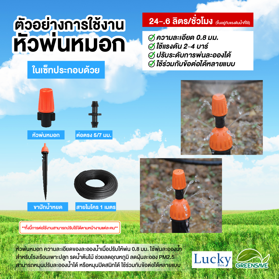 ใช้พ่นละอองน้ำสำหรับโรงเรือนเพาะปลูก รดน้ำต้นไม้