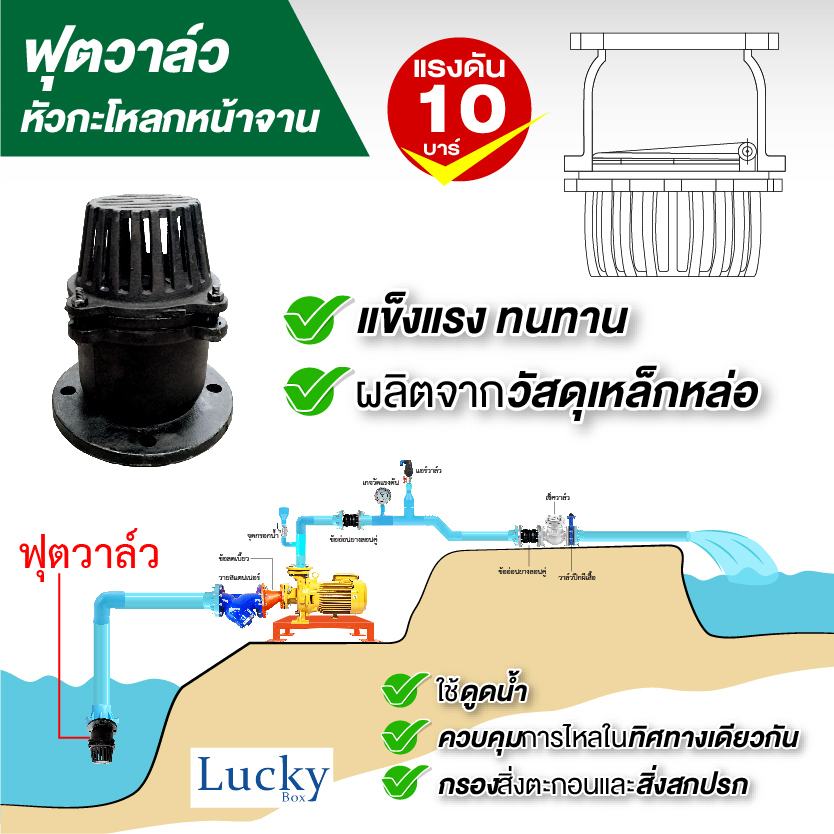 ทำหน้าที่เป้นตัวกันน้ำย้อนกลับออกจากปลายท่อ จำเป็นต้องติดตั้งฟุตวาล์วหากเรา